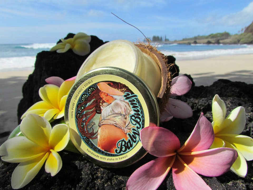 Ingredients: Organic Virgin Coconut oil, Organic Shea Butter, Organic Cocoa Butter, Organic Extra-Virgin Olive Oil, Organic Macadamia Nut Oil, Wildcrafted Kukui Nut Oil, Illipe Butter, Kokum Butter, Mango Butter, Organic Neroli Essential Oil, Organic Bergamot Essential Oil, Pure Love